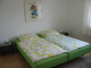 Schlafzimmer I mit Doppelbett (1,80 * 2,00 m), die Betten können auch einzeln gestellt werden