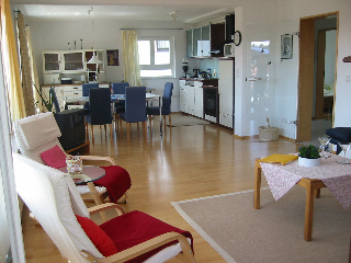 Nichtraucherwohnung im 1. Stock mit 75 m², Kinderbett auf Anfrage, Zustellmöglichkeit weiterer Schlafgelegenheiten,